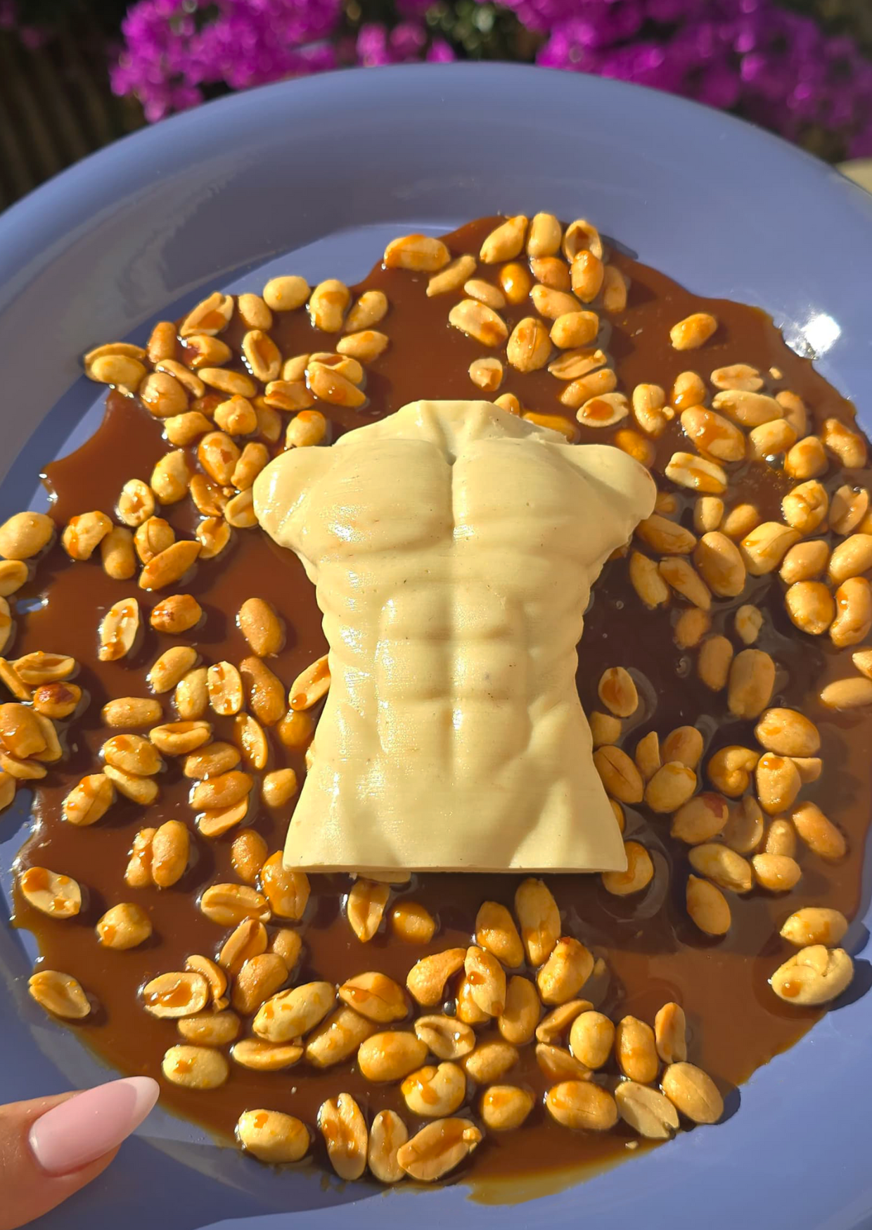 Ingrédients : chocolat blanc (sucre, lait entier en poudre, beurre de cacao, émulsifiant : lécithine de soja, extrait naturel de vanille), chocolat au lait caramel (sucre, beurre de cacao, lait entier en poudre, pâte de cacao, lait écrémé en poudre, sucre caramélisé 1,5%, lécithine de soja), cacahuètes, glucose, sucre inverti, sel.